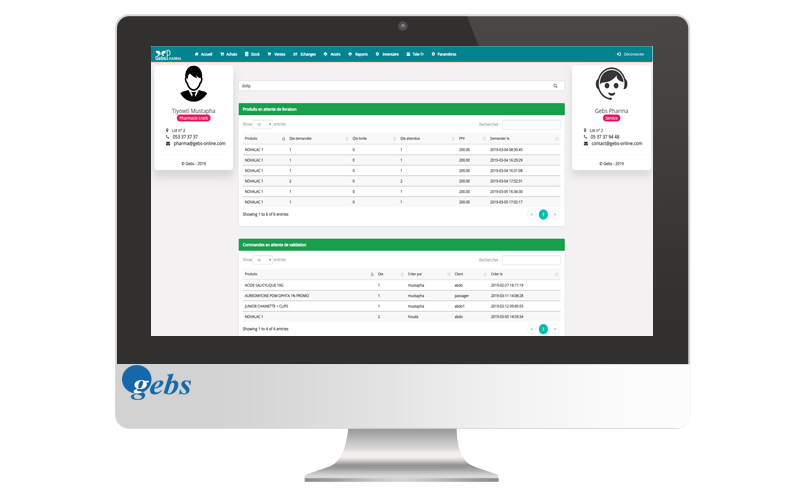 - GEBSPHARMA est installé localement sur votre PC. De plus, il est accessible depuis n'importe quel ordinateur ou appareil mobile connecté à Internet, Vous offrant ainsi la flexibilité de travailler où que vous soyez. vous pouvez ainsi passer vos commandes ou consulter Votre stock, votre recette, crédit client... en temps réel, où que vous soyez et à tout moment